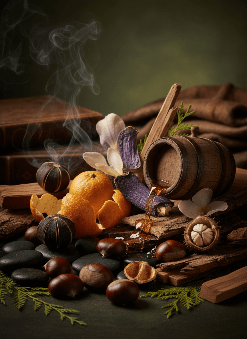 BoiséIrisWhiskyPoudréAmbréGourmandVioletteÉpicé chaudTerreuxNoix