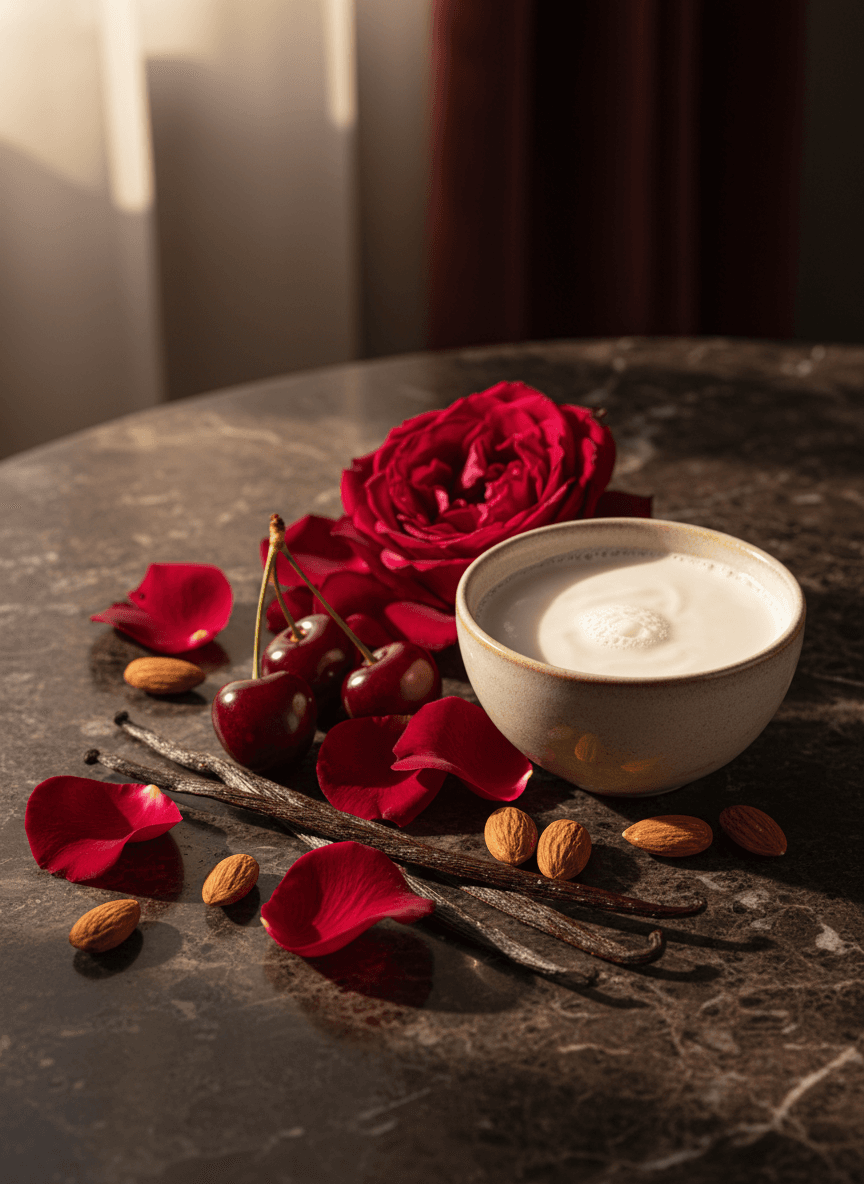 AmandeDouxGourmandCeriseNoixRoseVanilléFruitéBoiséFloral