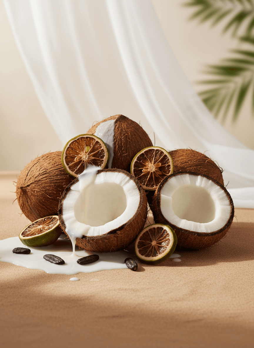 Noix de cocoVanilléDouxGourmandAgrumesAromatiqueAmbréLactoniqueÉpicé fraisTropicalNoix