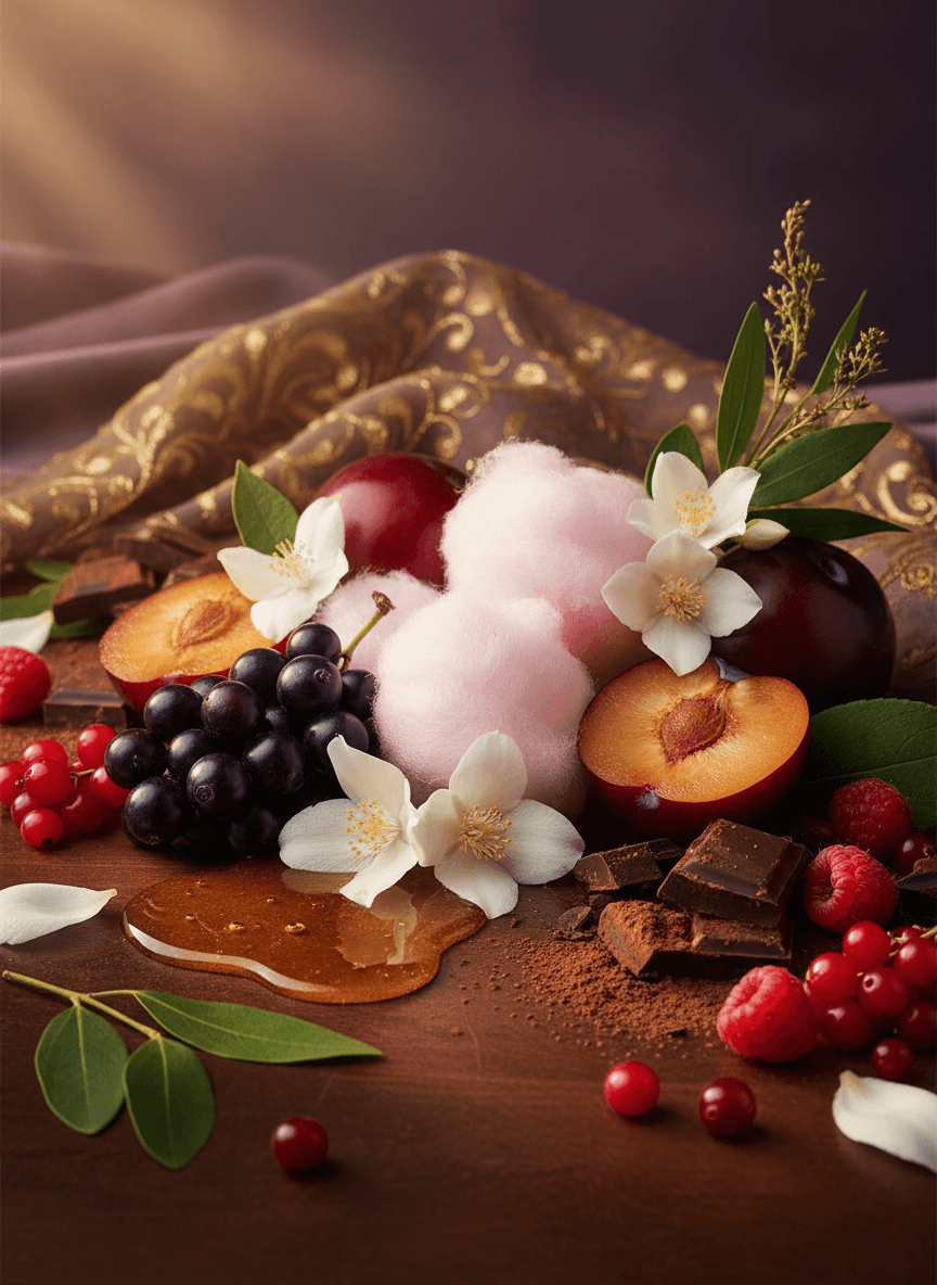 MielPruneFruits rougesMûreJasminPêcheAbricotRoseOrchidéeMuguet